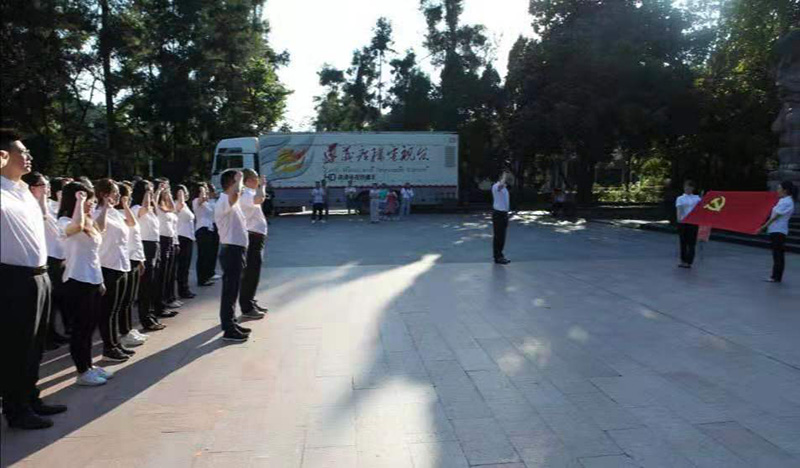 在紅軍山烈士陵園“紅軍烈士永垂不朽”紀念碑前,全體人員向紅軍烈士敬獻花籃、鞠躬致敬,表達對革命先烈的崇敬緬懷之情。由公司紀委書記冉蘭平領誓,面對黨旗重溫入黨誓詞,鏗鏘有力的莊嚴誓言激蕩在每個黨員心中。