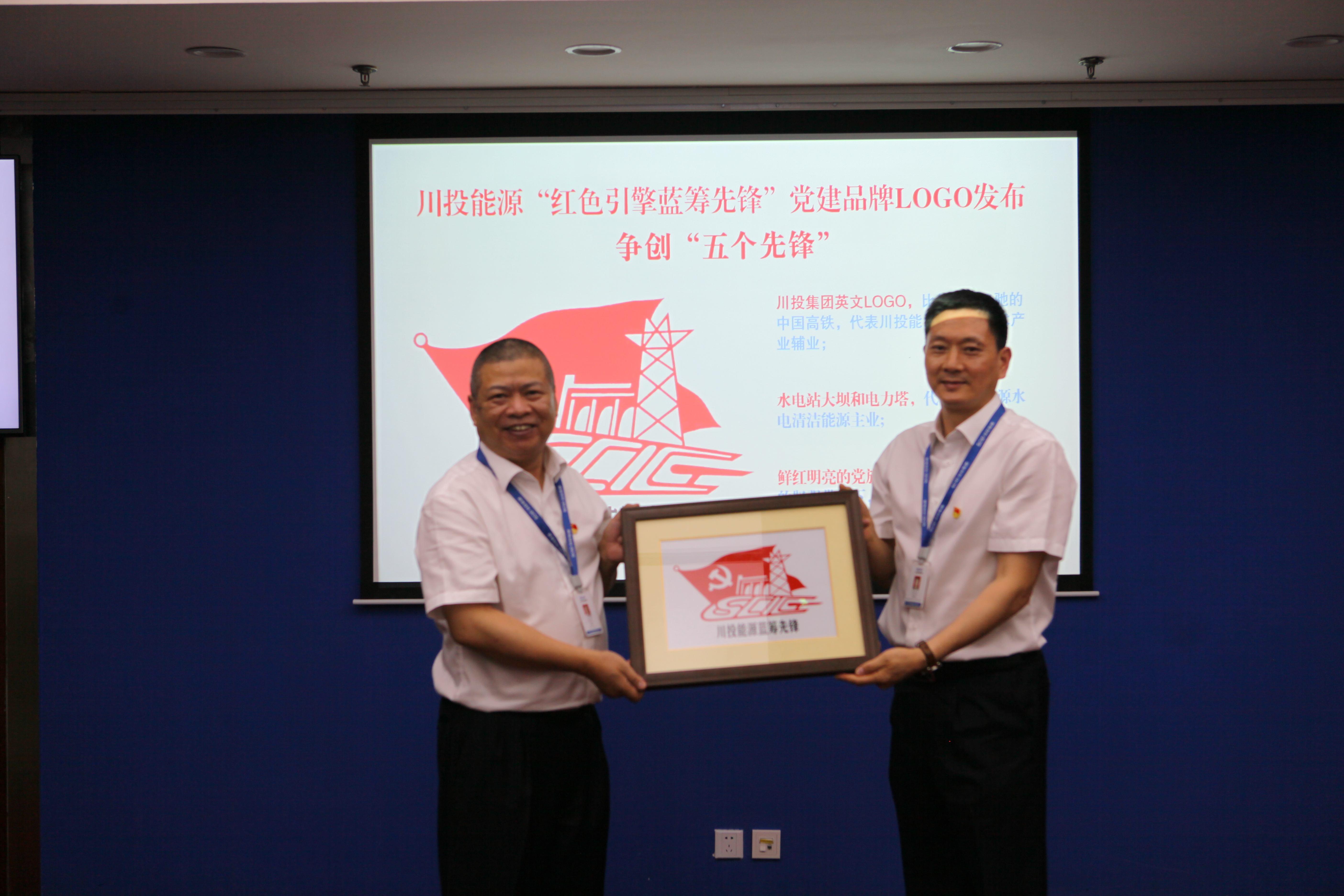 在公司黨建品牌標(biāo)識(shí)發(fā)布會(huì)上,黨委書記楊洪與紀(jì)委書記冉蘭平共同為黨建品牌標(biāo)識(shí)揭牌。在黨建品牌的帶動(dòng)引領(lǐng)下,公司的黨建品牌建設(shè)已經(jīng)形成了“一條主線串,各自放異彩”的良好局面。由川投能源所屬天彭電力黨員莊叢燦設(shè)計(jì)創(chuàng)作的黨建品牌標(biāo)識(shí),要素兼顧、設(shè)計(jì)新穎、要義突出,用川投集團(tuán)英文LOGO,比作急速飛馳的中國(guó)高鐵,代表川投能源的高新技術(shù)產(chǎn)業(yè)輔業(yè);水電站大壩和電力塔,代表川投能源水電清潔能源主業(yè);鮮紅明亮的黨旗,喻作風(fēng)帆,寓意在黨的堅(jiān)強(qiáng)帶領(lǐng)下,川投能源乘風(fēng)破浪改革前行的美好景象。