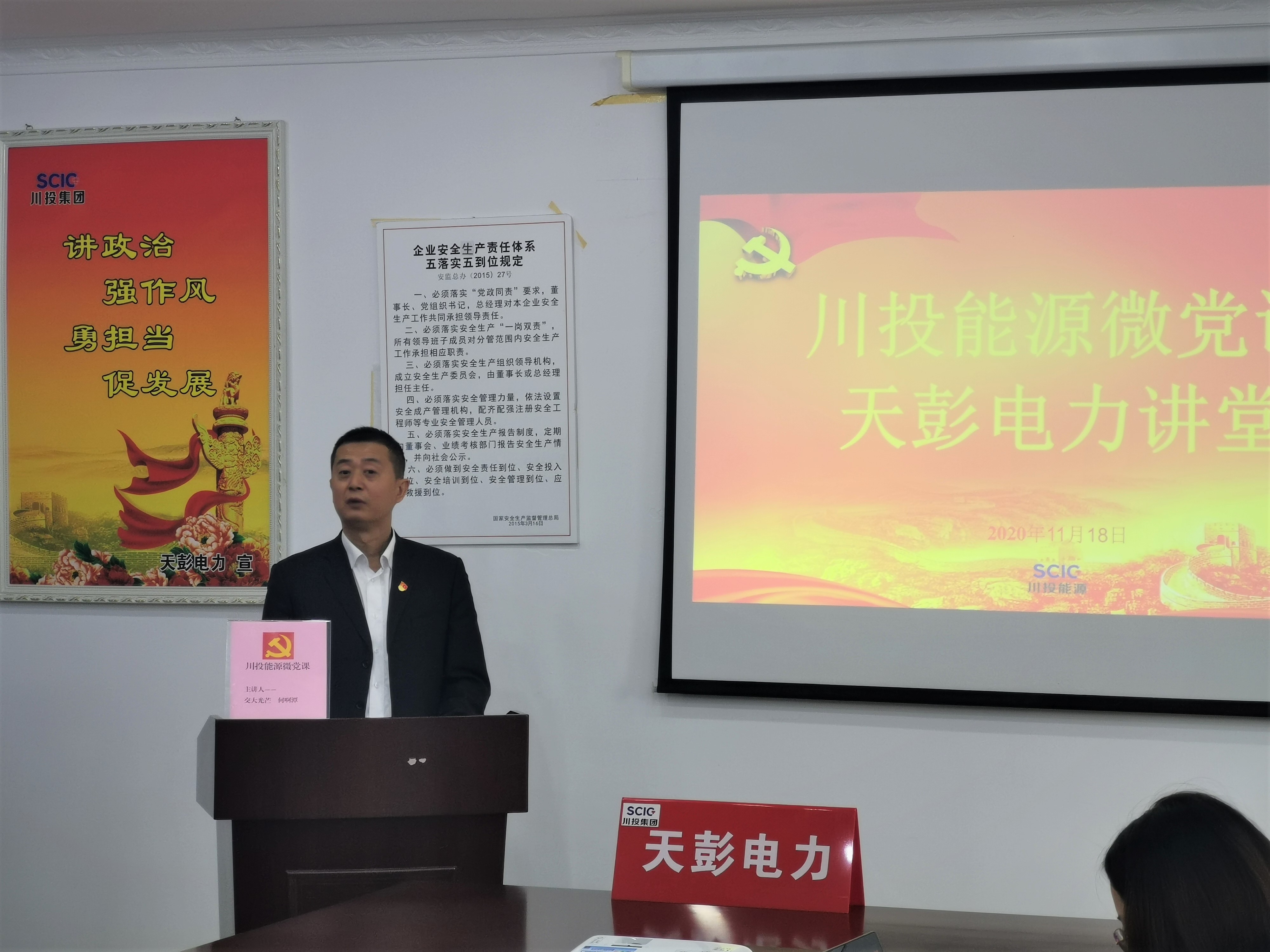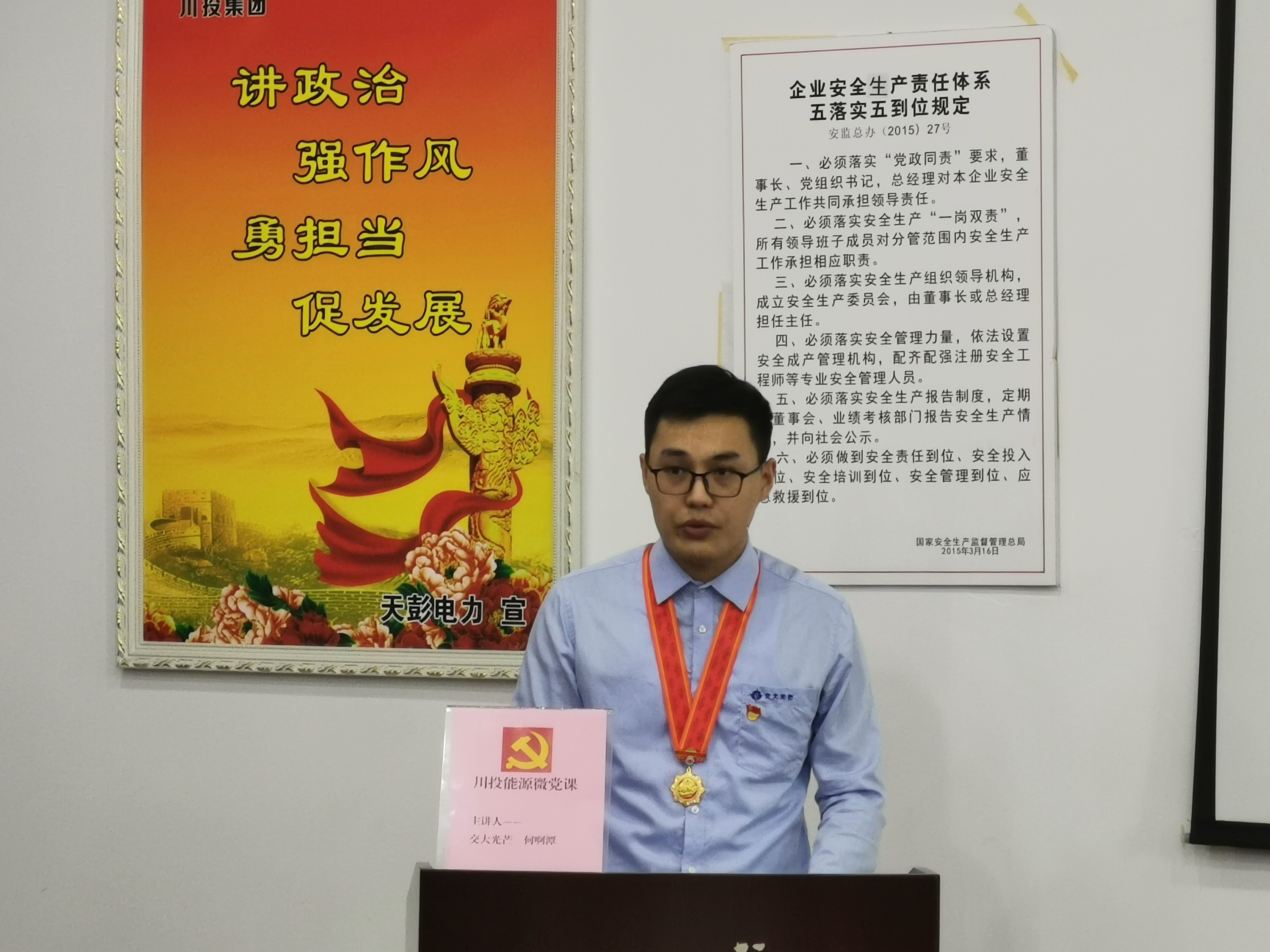 11月18日,川投能源微黨課首講在天彭電力展開,主講者是剛獲得四川省“四川省抗擊新冠肺炎疫情先進(jìn)個(gè)人”光榮稱號(hào)、來自交大光芒事業(yè)二部的技術(shù)工程師何啊潭。